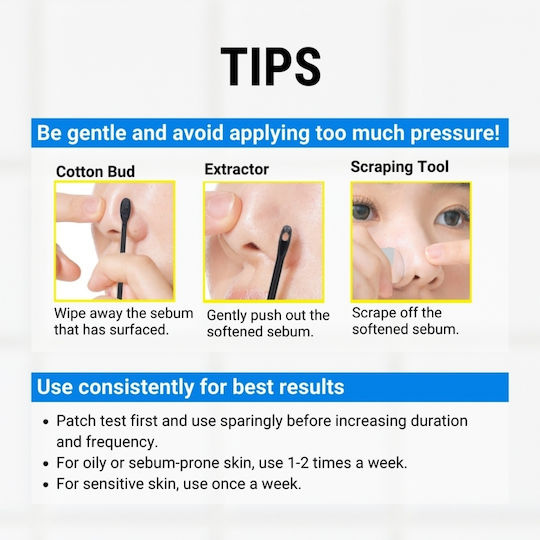 Τα βαμβακερά επιθέματα έχουν σχεδιαστεί για άνετη, ομοιόμορφη εφαρμογή, ώστε η ουσία να λειτουργήσει εκεί που χρειάζεται, και οι μπατονέτες προσφέρουν έναν στοχευμένο και ακριβή τρόπο αφαίρεσης του μαλακωμένου σμήγματος. Με αυτή τη σειρά, ο καθαρισμός γίνεται μπακάλυνθος φροντίδας, όχι μια ατελής προσπάθεια να «τραβήξεις» κάτι από τον πόρο.
