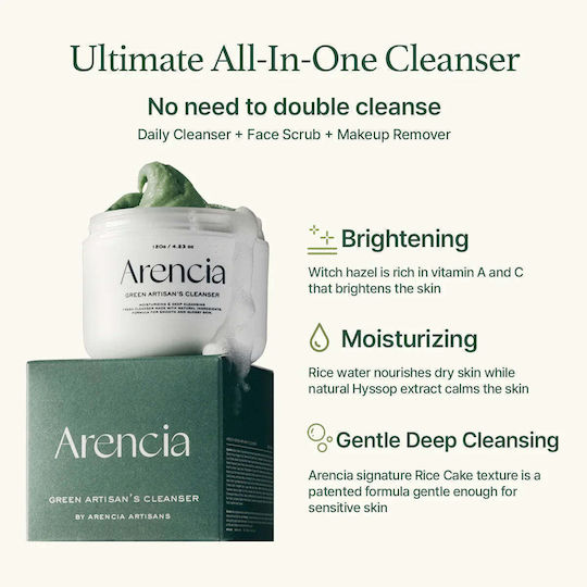 Το Arencia Fresh Green Cleanser είναι ένα ενυδατικό καθαριστικό με απαλή, ελαστική υφή mochi που καθαρίζει αποτελεσματικά χωρίς να αφυδατώνει το δέρμα.