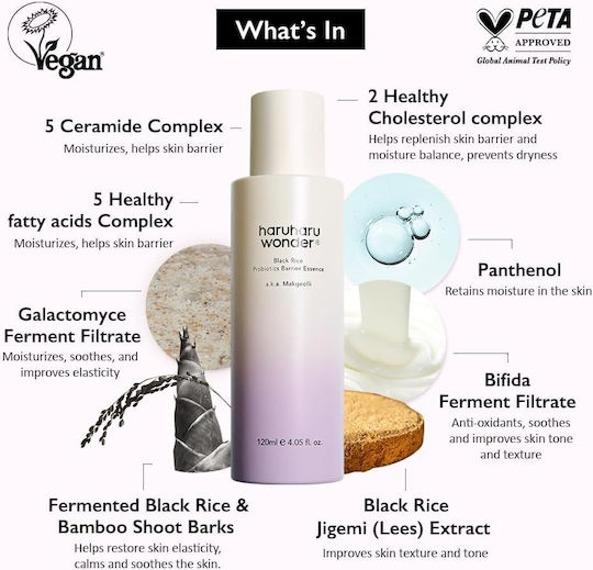 Η Haruharu Wonder Black Rice Probiotics Barrier Essence είναι μια προηγμένη essence που ενυδατώνει σε βάθος και ενισχύει τη φυσική άμυνα του δέρματος.